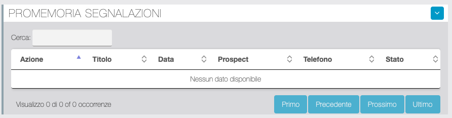 Tabella dei Promemoria su singole Segnalazioni