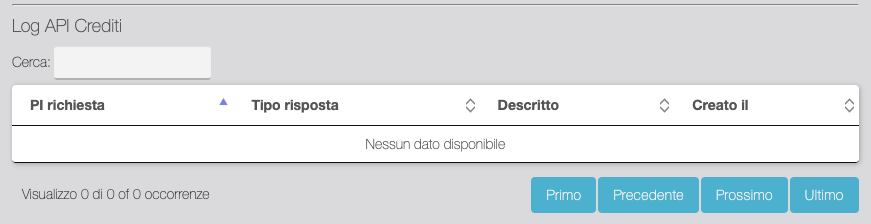 Tabella di log della API Crediti