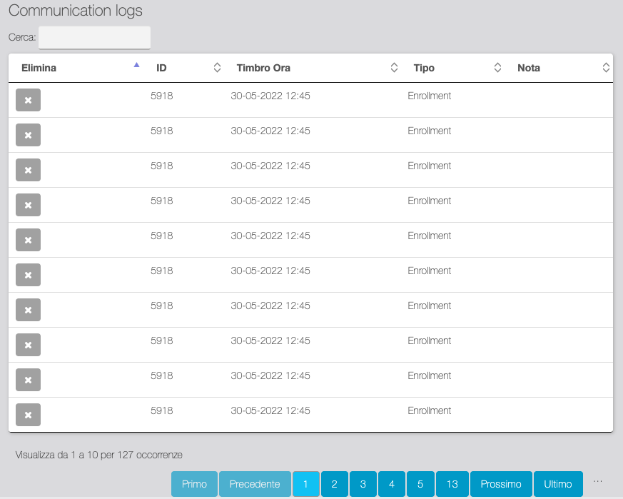 | Tabella di visualizzazione delle notifiche push di cambio stato inviate. |