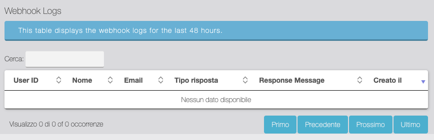 Tabella di Log del Webhook Segnalatori