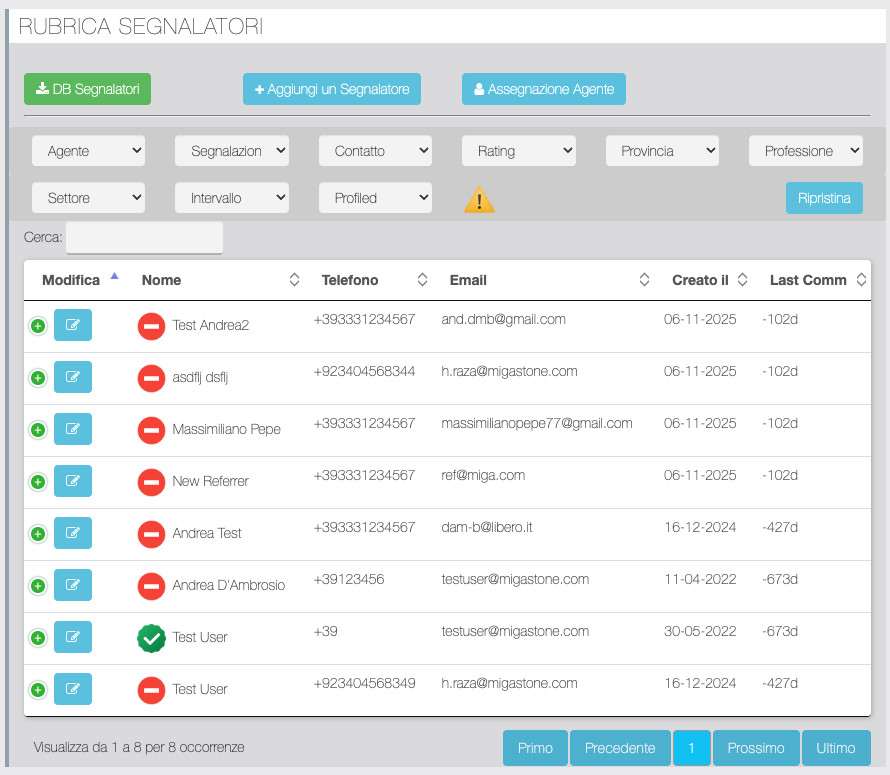 | Agente può vedere segnalazioni? | Se abilitato l'agente potrà vedere dalla app le segnalazioni dei segnalatori a lui assegnati. |