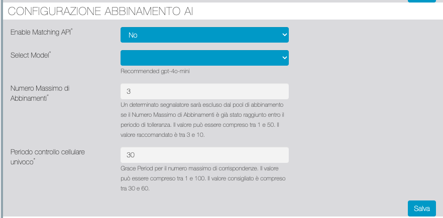 CONFIGURAZIONE ABBINAMENTO AI