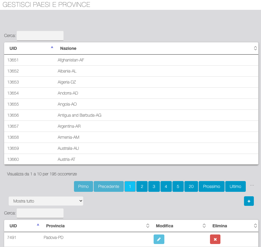 ![]() | Bottone da utilizzare per l'eliminazione di più righe, dopo aver effettuato multiselezione dalla colonna "Azione" |