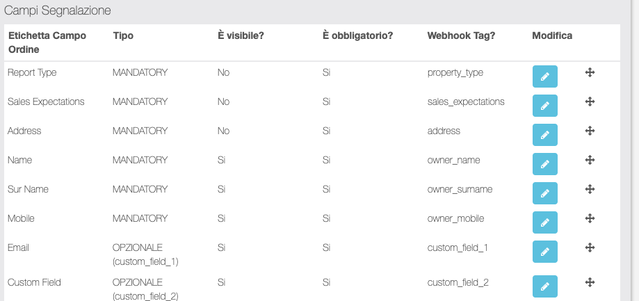 | Abilita Webhook Segnalatori? | Abilita/disabilita |