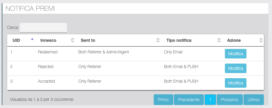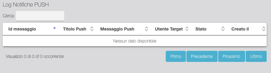 | Tabella di visualizzazione delle notifiche push di cambio stato inviate. |