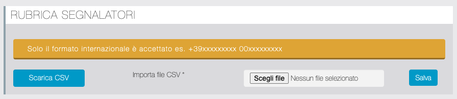 | Abilita indirizzo (Paese, Provincia) | Abilita i campi di inserimento Paese e Provincia nella pagina Impostazioni/Profilo del Segnalatore da app |