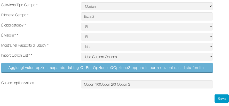 | Etichetta Extra 2 | Etichetta personalizzata per il campo Extra 2 |