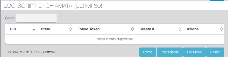 Schermata di log degli ultimi 30 script di chiamata elaborati.