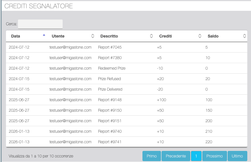 Questa funzione consente di assegnare livelli di qualifica ai Segnalatori al raggiungimento di una soglia di Crediti ricevuti con le segnalazioni. L'abilitazione o meno di questa funzionalità e l'intervallo di tempo per mantenere la qualifica raggiunta sono da definire nelle Impostazioni Generali.