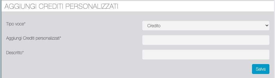 | Abilita API Crediti? | Abilita/Disabilita |