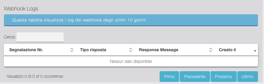 Tabella di Log del Webhook Segnalatori